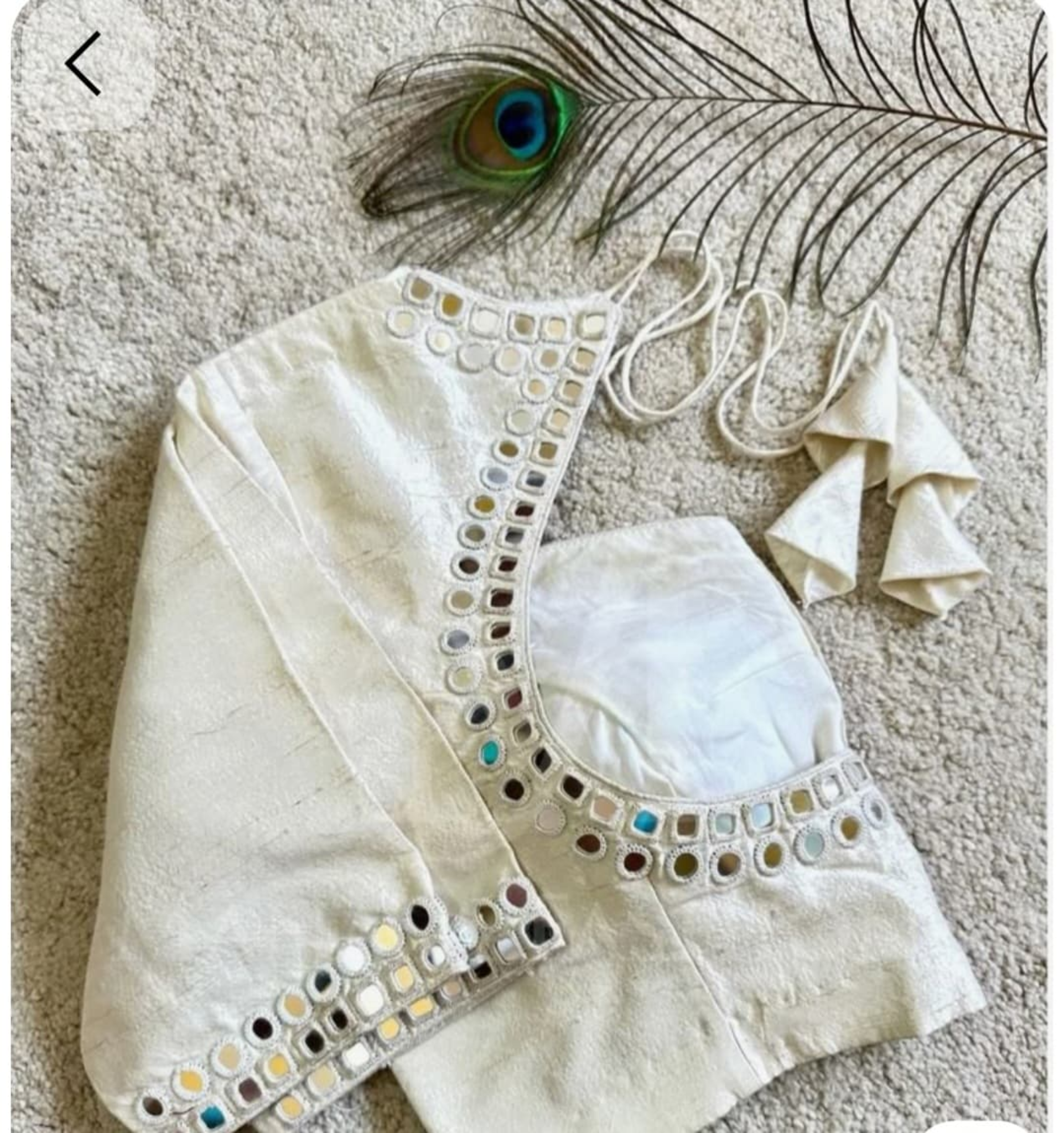 Add understated elegance to your ethnic collection with our Ivory Mirror Cutwork Designer Blouse. Crafted from a soft, premium ivory fabric, this blouse features delicate mirror cutwork detailing along the neckline, sleeves, and borders, creating a refined yet contemporary look.